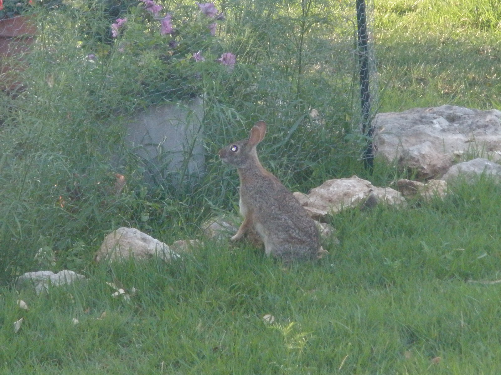 When our beloved doggie passed away recently, the morning of that sad event we saw this bunny come sit next to our garden. For hours, he sat there, legs straight out in back of him, looking into our kitchen window. Intently.As if he came to say goodbye to our pal.