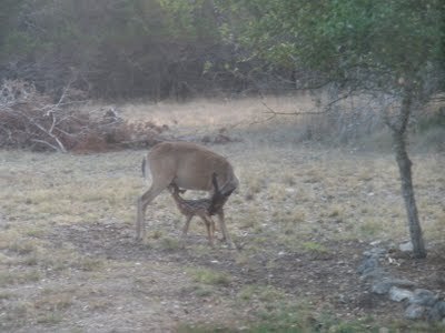 Here are Mama and Baby in our back yard, which normally this time of year does have tall grasses. Crisp, brown but tall. Now? Not so much.