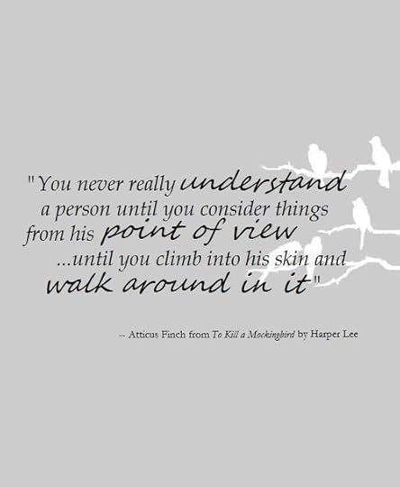 I love this quote from To Kill a Mockingbird. Anytime I feel like I'm bogged down with the inevitable muck of writing, I try to remind myself that it is not my desire to churn out book after book. It is my desire to tell stories whether fiction or non-fiction with brutal honesty that reveals all the nooks and crannies of the human soul. I will not cut corners for the sake of speed. As a writer, I do my best to inhabit the characters and walk around in their individual circumstances so I can