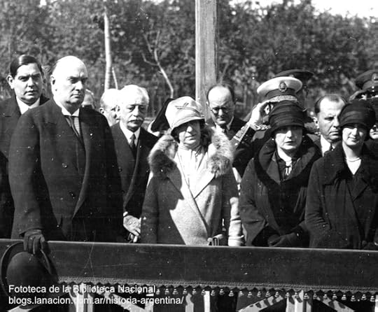 Además, en el palco lo acompañan ministros. De hecho, dos integrantes del Gabinete, presentes en la celebración, serían presidentes. En la primera foto se encuentra (lamentablemente tapado) el Ministro de Guerra, Agustín Pedro Justo, quien está haciendo la venia. En la segunda foto, tocándose la cabeza, vemos a Roberto Marcelino Ortiz.