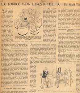 En la revista Para Ti del 16 de junio de 1931 se publicaron, bajo el título “Los maridos están llenos de defectos” algunos consejos para las mujeres casadas. La nota fue escrita por un hombre casado, conviene aclarar. En cuanto al texto que aquí reproducimos, recomendamos calma: no hace falta que nadie tome estos consejos al pie de la letra. La nota dice: