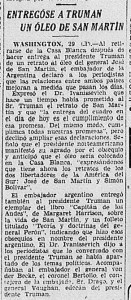 Ivanissevich se ocupó de aclarar antes los periodistas que semanas antes le habíaprometido a Truman el óleo del Libertador y que esta era una demostración de confiabilidad: “Cumplimos nuestras promesas”, subrayó. La noticia se reprodujo en los diarios locales.