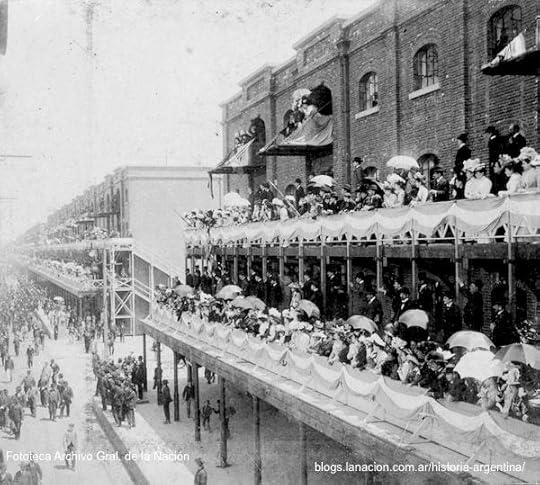Las fotos corresponden al día de la partida del visitante, a bordo del vapor Riachuelo. Como podemos ver, los balcones estaban adornados con banderas argentinas y los paraguas funcionaban como sombrillas.