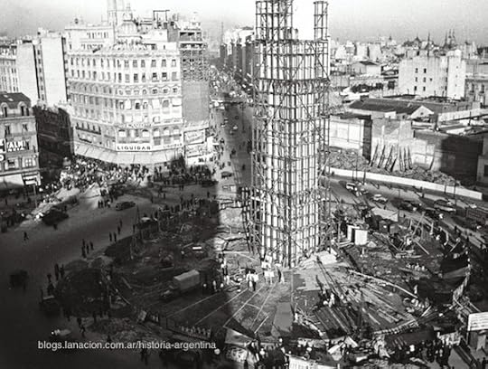 El 3 de febrero de 1936, cuando se cumplían cuatrocientos años del arribo de Pedro de Mendoza a Buenos Aires, el intendente Mariano de Vedia y Mitre encargó al arquitecto Alberto Prebisch un monumento en la Plaza de la República (un espacio generado por el cruce de la avenida Diagonal Norte con el ensanchamiento de Corrientes y las demoliciones por la creación de la avenida 9 de julio), para rendirle un homenaje a la ciudad. Prebisch resolvió que montaría un obelisco.
