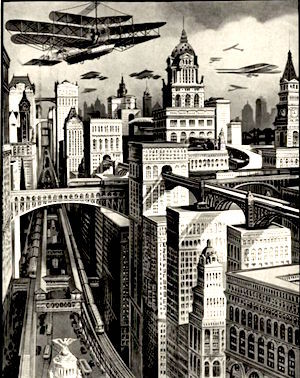 El transporte público dentro de la Buenos Aires del año 2080 será mediante comodísimos tranvías eléctricos con mullidas butacas para ocho pasajeros –nadie viaja parado en la imaginación de Sloen– y también unos magníficos trenes subterráneos que pasarán por las estaciones cada cinco minutos. Esto lo escribió 35 años antes de que en Buenos Aires se inaugurara la primera línea de subtes de Sudamérica.