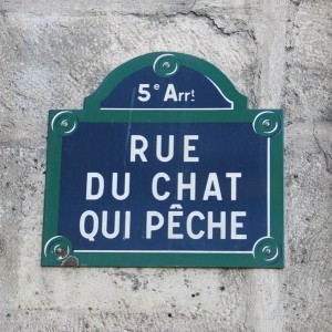 Durante aquella fructífera estadía, María Elena conoció la calle más estrecha de la ciudad. Vecina a la catedral de Notre Dame, río Sena de por medio, el pasaje se mantiene con sus 28 metros de longitud por 1,80 metros de ancho. Es muy conocida gracias a un extraño cartel “Rue du chat qui pêche” (Calle del gato que pesca). En realidad, el callejón no tenía tal nombre, pero el cartel de un negocio mostraba esa imagen y se volvió popular; a tal punto, que se crearon legendarias historias sobre el mítico gato.