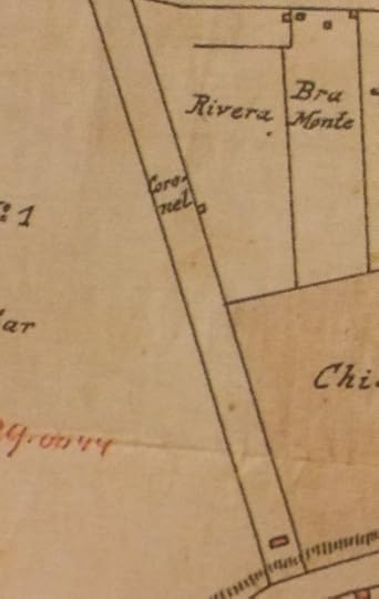 Pondremos la lupa en una zona específica. Se trata del sector comprendido por las actuales Santa Fe, Austria, Las Heras y Scalabrini Ortiz. Los propietarios de quintas de esos terrenos relevados por el agrimensor italiano fueron los señores Sar, Rivera, Coronel, Bracamonte, Marcó Lon, Holemberg, Vidal y Chichipía. La quinta más pequeña ocupaba un rectángulo muy angosto y pertenecía a la familia Coronel. El rectángulo era el terreno que hoy ocupa la avenida Coronel Díaz.