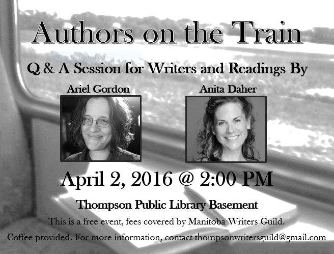 In addition to this event, we're also doing a creative writing workshop at UCN on April 9 from 10 am - 2 pm and presentations at Duke of Marlborough School while we're in Churchill.