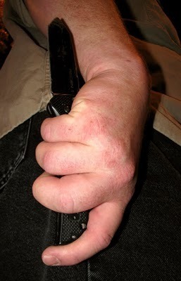 And then, re-considering, pulled this knife from his pocket. Which he apparently carries around with him everywhere.