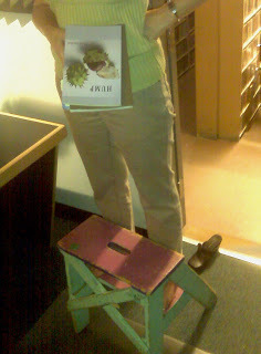 Since Lori and I were to share a mic, Lori had to stand on a step-stool, which we sourced from the CKUW offices.