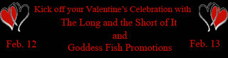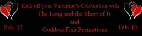 The Long and Short Reviews is throwing a Valentine's Day celebration this weekend! I'm jumping in on Sunday, so look for me then, both at the LASR site and the Goddess Fish Party Pavilion. Gotta love a party! Especially one with great prizes. For the grand prize, the winner will have her choice of a WiFi Nook, a WiFi Kindle or a $150 GC to either Amazon or Barnes and Noble. Other prizes include at least four $25 Amazon or Barnes & Noble gift cards, randomly awarded to a commenter. And if participation numbers are up, LASR will add more $5 and $10 gift cards to the mix. So make sure you leave plenty of comments, and spread the word!