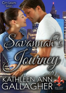 Cate: Yum! Tell us about your latest release, and where readers can find it online.Kathleen: Savannah’s Journey, book 1 in the City Lights Series is a contemporary romance. It’s available here. http://amzn.to/1mHtNXz