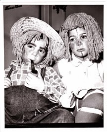 Cate: Earlier every year! Do you have a favorite memory of a Halloween past? Taryn: Here is me as a hobo with strategically-placed five o’clock shadow. And here is me and one of my brothers as Raggedy Ann and Raggedy Andy. My mom apparently liked the scruffy look, back in the day, when she did not work outside the home and needed a creative outlet aside from making curler bags out of empty Clorox bottles and papier mache bangle bracelets. We went to a store to get our picture taken as Raggedy Ann and Raggedy Ann and won a TV!