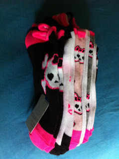 Socks - girls' size up to 10, so would fit a small woman's foot :)