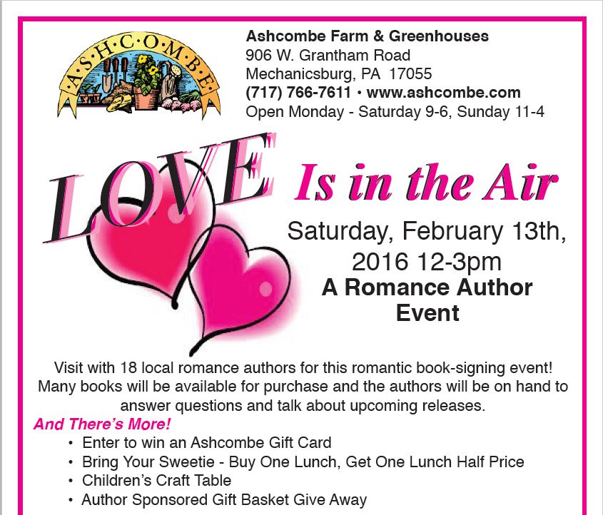 And tomorrow, I'm joining more than a dozen other authors at Ashcombe Greenhouse in Mechanicsburg, Pa..