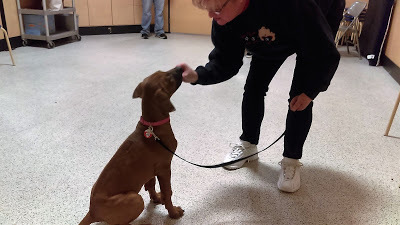 As I’ve said before, Sunny was nine years old when Kassi came along, and to be honest with you, I had forgotten how I had trained him, at least until I started training Kassi. The basics, sit, stay, etc. came easily enough, but the more specialized commands seemed difficult, until I realized that my secret to training Sunny was repetition. Every time I put his leash on him, I said, “Get your leash on,” and he would go to the same spot and wait to be leashed. Kassi followed suit. Now she does it, sits alongside Sunny just like Sunny sat alongside Brodi. Every time we leave, I tell Kassi, “Go get in your crate.” And she does, willingly because I also give her a treat and put in her favorite bone to chew. She knows what’s going to happen long before it does by our actions, getting on our shoes, coats, readying to leave, but I say it anyway. Every time. When I release her from her crate, I say the same thing every time. And I will always keep on saying it to calm her, to give her comfort, so she knows what to expect. When I give the dogs treats, I always tell them to “Be Nice.” It's a command that means be patient, wait, don’t bite the hand that feeds you, be gentle. Kassi watched Sunny from the start and now she’s a pro at "Be Nice." If I fail to give that command it’s all about the food, and I’m risking and encouraging aggression and that's something I don't want to do. If I got a nick on my finger it would be my own fault. So, the secret is repetition…always, even when the dog shows you that they know what's coming next.