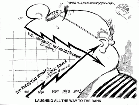 Tax laws, for example, are a favorite target of corporations and the super-rich who run them. They left the official rate high, (so they could continue to bitch, whine, piss, and moan) but they created a wonderful set of loopholes that mean that practically no corporation actually pays that rate.