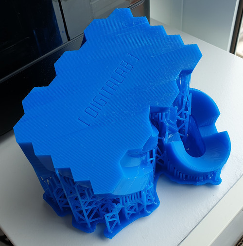 Above: a view of the test part, printed in draft resin.
