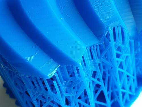 Above: close-up of the rather robust support material connection to the print.