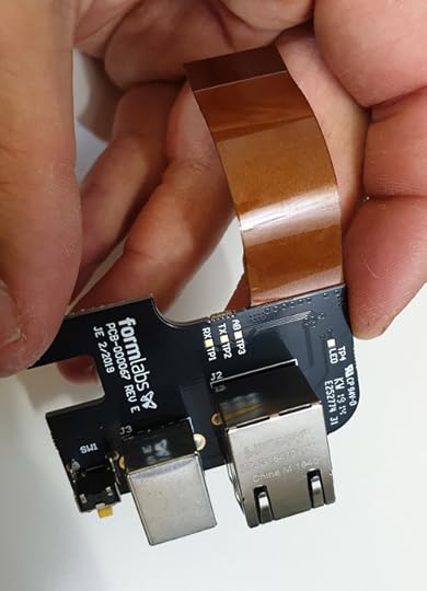 The LCD, touchscreen, and backlight are integrated with the “Display-o-Matic” board, which is held in place using a bit of double-sided tape. Peeling the board off its mounting reveals a small surprise. There’s two apertures cut into the paint next to the screen, along with a 12-LGA footprint that’s not populated. The wiring and empty footprint on the board would be apropos to an ST Microelectronics VL53L0X (or VL53L1X) proximity sensor. This neat little part can detect 1-D gestures up to 4 meters out using time-of-flight laser ranging. I imagine this might have been a candidate for the missing “on/off” switch on the Form 3, but for whatever reason it didn’t make the final cut.