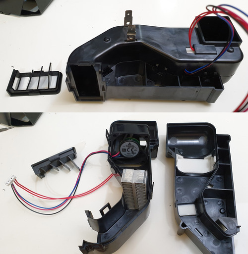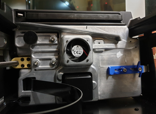 In addition to measuring the resin levels, the Form 3 also needs to heat it. It seems the resin works best at slightly above normal room temperature, around 30C; and unless you live in Singapore, you’re going to need something to heat up the resin. The Form 2 used a nifty PCB-turned-heater around the resin tank. The Form 3 abandons this and incorporates basically a hair dryer inside the printer to heat the resin.