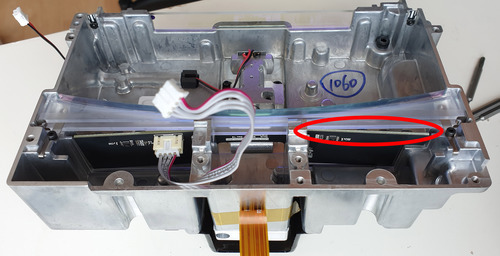 There’s an incredibly subtle detail in the LPU that really made me do a double-take. There is a PCB inside that is the “Laser Scattering Detector” assembly. It contains six photodiodes that are used in conjunction with the calibration standard to provide feedback on the laser. The PCB isn’t flat – it’s ever so slightly curved. I’ve provided a shot of the PCB in the above photo, and highlighted the area to look for on the right hand side, so you can compare it to that on the left. If you look carefully, the board actually bends slightly toward the viewer in this image.