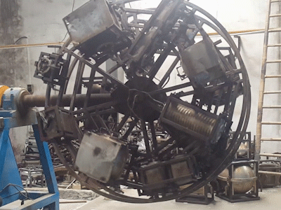The Ware for April 2019 is a roto-molding machine. I’ve seen these machines in various sizes, but this is by far the biggest one I’ve seen to date. It’s used to mold furniture-sized objects. One thing that you don’t get from just watching an animated GIF is feeling the sheer amount of heat coming from the machine. The whole assembly is shoved into a gas furnace and heated so that the plastic is molten, and then taken out to cool over a period of 30-45 minutes, so it can get quite hot around the molds as they cool. Adi guessed this one right away, congrats and email me for your prize!