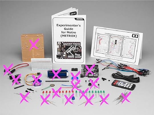 Above: The Adafruit MetroX Classic Kit is representative of a typical electronics education kit. Items marked with an “X” in the above image are potentially impacted by the new USTR tariffs.