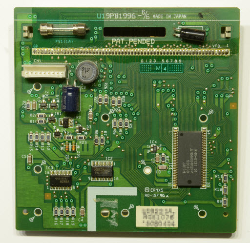 The Ware for January 2018 is a front panel VFD/switch controller board for an HP Laserjet 4+. Archels nailed it — I checked u19pb1996 in Google for hits and nothing came up, but maybe I was too hasty and typo’d the number when cross-checking the image. Anyways, this post is now the top hit for that part number :) Congrats, email me for your prize.