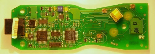 The ware is difficult to evaluate due to the lack of a key component — whatever it is that mounts into the pin sockets and interacts with the coil or transformer near the hole in the center of the circuit board. My feeling is the placement of that magnetic device is not accidental.