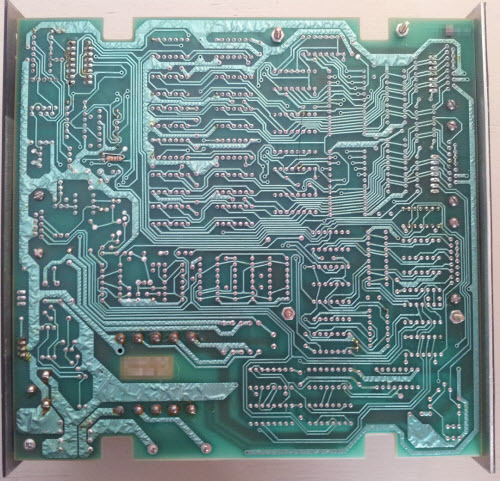 One question for the readers (separate from naming the ware!), it’s been something I’ve wondered about for decades. On the back side of this board, one can see ripples on the fatter traces. My original assumption is this is due to a problem with hot air leveling after the application of a solder finish to the bare copper board, before the soldermask is applied. However, the top side is almost entirely smooth, so clearly the process can supply a flatter finish.