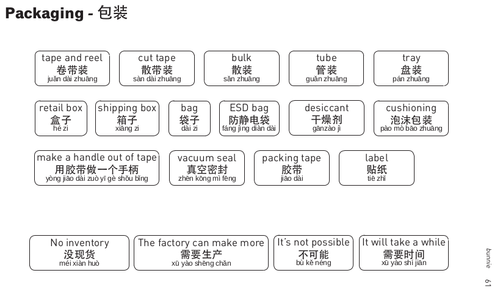 Thus, I spent a fair bit of time customizing the physical design of the book to make it into a tool and an experience. I considered the human factors of the Shenzhen electronics market; this book is not just a dictionary. This sort of tweaking can only be done by working with the printer directly; we had to do a bit of creative problem solving to figure out a process that works to bring all these elements together that can also pump out books at a rate fast enough to keep it in the realm of affordability. Of course, the cost of these extra features are reflected in the book’s $35 cover price (discounted to $30 if you back the campaign now), but I think the book’s value as a sourcing and translation tool makes up for its price, especially compared to the cost of plane tickets. Or worse yet, getting the wrong part because of a failure to communicate, or losing track of a good vendor because a receipt got lost in a jumble of samples.