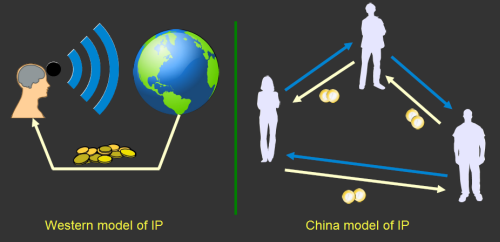 This fuzzy, gray relationship between companies and entrepreneurs is just one manifestation of a much broader cultural gap between the East and the West. The West has a “broadcast” view of IP and ownership: good ideas and innovation are credited to a clearly specified set of authors or inventors, and society pays them a royalty for their initiative and good works. China has a “network” view of IP and ownership: the far-sight necessary to create good ideas and innovations is attained by standing on the shoulders of others, and as such there is a network of people who trade these ideas as favors among each other. In a system with such a loose attitude toward IP, sharing with the network is necessary as tomorrow it could be your friend standing on your shoulders, and you’ll be looking to them for favors. This is unlike the West, where rule of law enables IP to be amassed over a long period of time, creating impenetrable monopoly positions. It’s good for the guys on top, but tough for the upstarts.