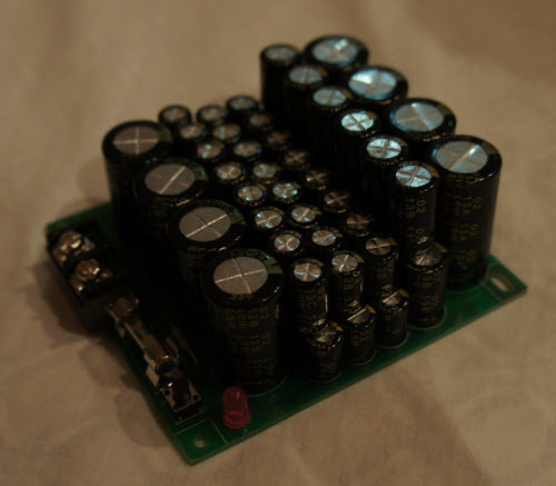 What I’m told is that you install this on an electric bike to prevent the motor from burning out. I….don’t really think that’s effective, nor do I really believe it. At the very least, stacking capacitors like this while connecting them with thin copper traces to a terminal block and then wiring them with a long pair of wires to a battery seems to nullify any benefit of equalizing the ESR of capacitors by using a banked array of different values.