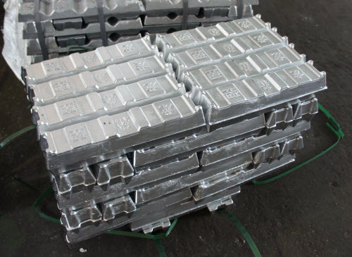 Ingots of 93% zinc, 7% aluminum alloy; approx 1 ton shown
