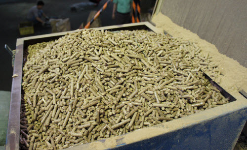 Compressed sawdust pellets, used to fuel the ingot smelter