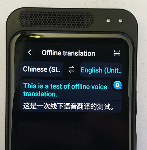 The OS is basically a stripped down Android phone that runs some real-time voice and image translation software, which feels descended from Google Translate, or possibly “borrowed” from Rabbit OS. Above is a snapshot of the home screen UI. I’m not sure who pays for the back-end service for the on-line translation — it doesn’t require a subscription or registration of any kind for the device to operate (I can almost hear the howls of pain from VCs from all the way across the Pacific) — but more importantly, the device is capable of offline translation.