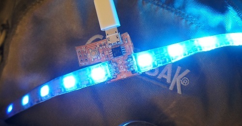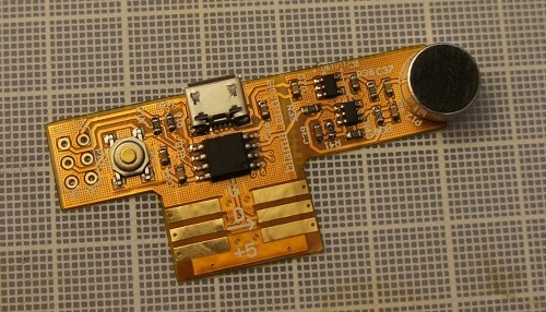 The intent behind the LED strip driver was to provide a compact and minimal way to drive cut-to-length LED strips, so that no programming is required at the point of installation. An important feature is the ability to automatically measure the length of an LED strip loop, and adjust the pre-programmed light patterns accordingly. The board was made out of flex circuit material and included a microphone circuit that you could cut off with a pair of scissors, giving an extra dimension of customization with minimal tools.
