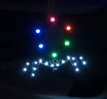 There’s also a huge flame-shooting art piece on our frontage called the “Hive Queen”. Normally, users have to walk up to it and hit buttons to make it shoot fire. Well, after a few beers, someone suggested it would be a good idea to hack another receiver into the Hive Queen (thank you Sean Stevens for loaning me the relay breakout board!). It required a few code changes to ensure that nobody could jam the fire control solenoids on, but it worked.