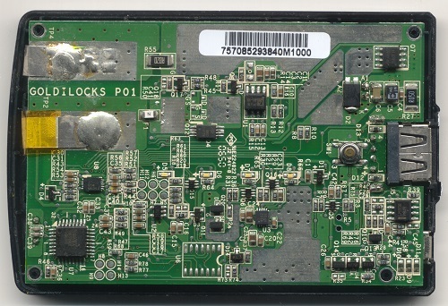 The Ware for August 2013 was an APC Mobile Power Pack, model number UPB10. I bought it several years ago, apparently before they had efficient single-chip solutions for battery packs. One of the nice things about this pack is it provides a “true” 1.6A at 5V output, i.e. it can pump out that current until the battery is depleted, unlike cheaper packs which may be rated for about that much current but can only supply it for short bursts before the internal regulators overheat and shut down. The pack itself serviced me well for years, until the ultrasonic welds that held together the case-halves failed, spilling its guts, and giving us last month’s ware in that process.