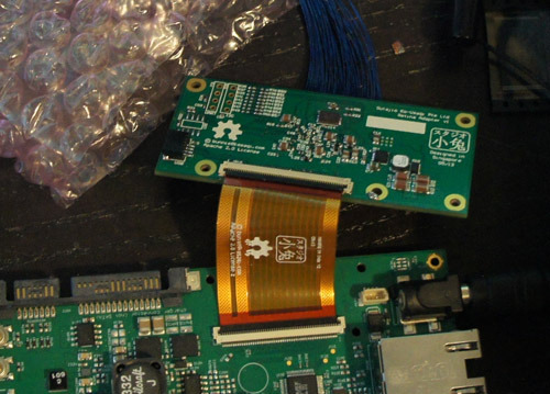 I really care about having a lot of pixels on my laptop. So we revised the LCD interface to be easily upgradeable and interchangeable using mezzanine adapter boards. The first adapter board we designed is for a Retina display. We’re now using an LG LP129QE: 12.85″, 2560 x 1700 pixels (239ppi), with a 24-bit color depth. It looks gorgeous.