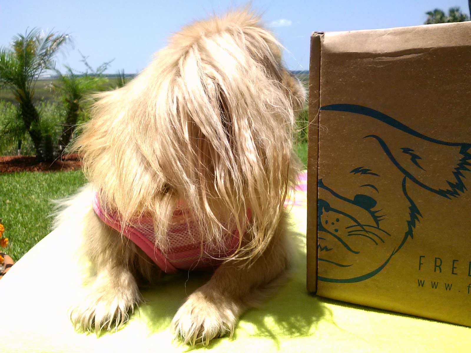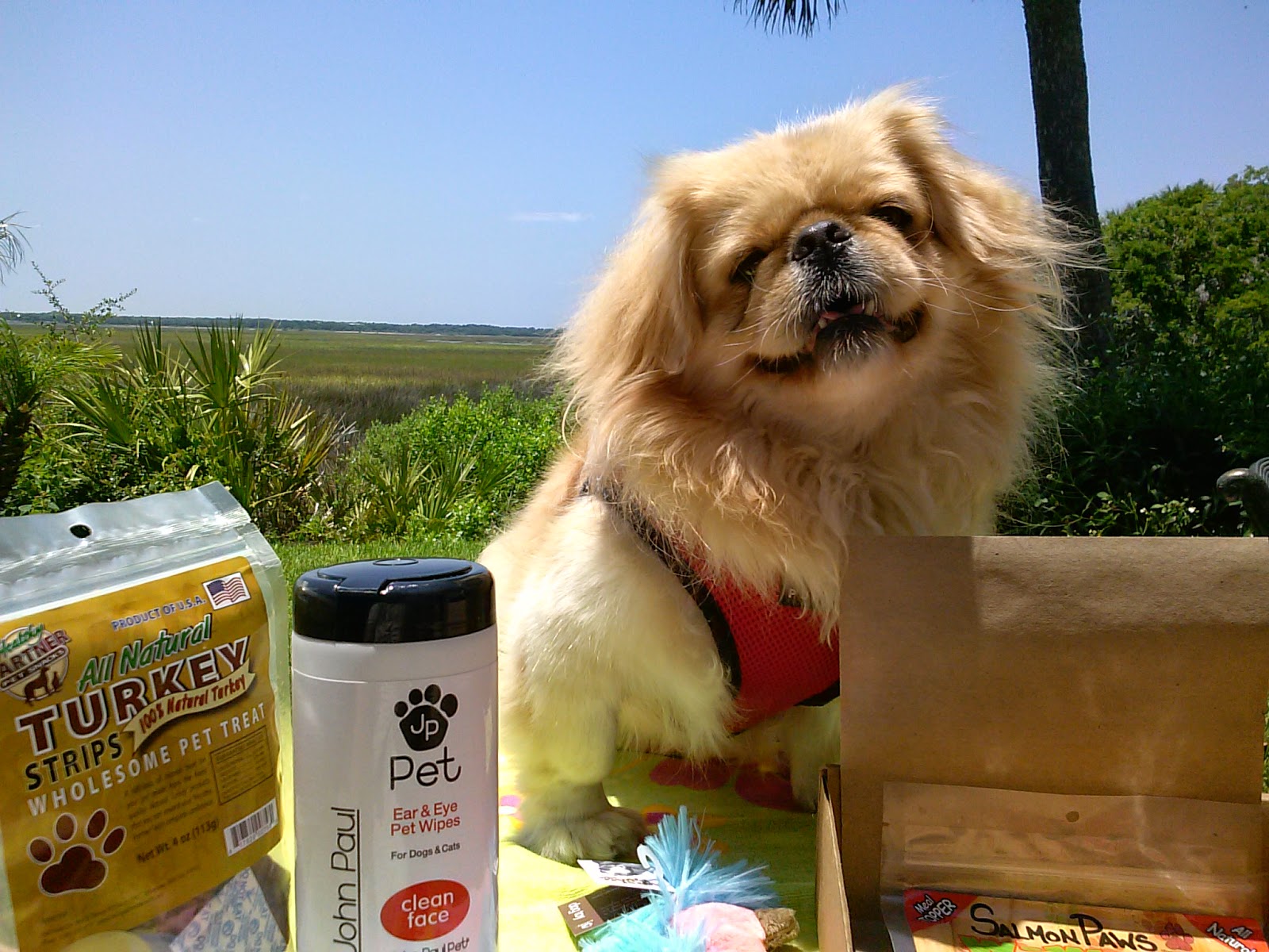 There was some yummy stuff...a play toy....and grooming products to keep us looking good.