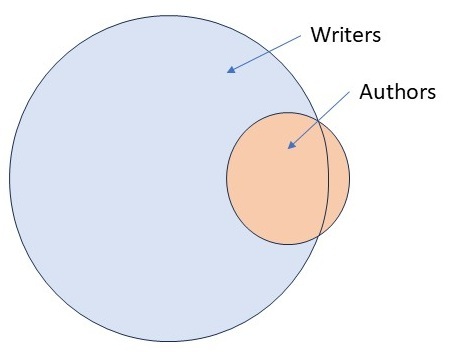 Authors are people who’ve had writing published. Big press, small press, self-published—doesn’t matter. Their work gets read by others and is intended that way.