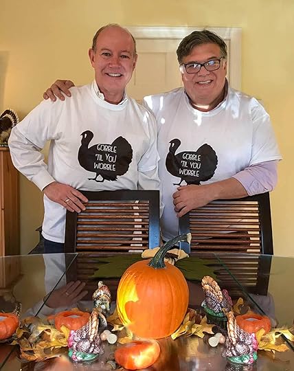 Oh, the good old days. That photo was taken Thanksgiving dinner two years ago. Our niece, Megan, made those T-shirts for us. All eight of us. The day was a happy jumble of parade watching, cooking, dancing, dancing while cooking, some football (well, we had our nephews with us, what were we to do?), and eating. Lots and lots of eating.