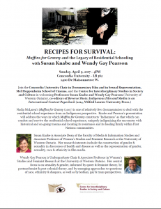 On April 10th I will be defending my dissertation titled Reinvigorating the Queer Political Imagination: Affect, Archives, and Anti-Normativity. My defence will be chaired by Rebecca Duclos and the examining jury will be comprised of Thomas Waugh, Anne Whitelaw, Deborah Gould, Monika Gagnon, and Susan Knabe. Susan Knabe and her collaborator Wendy Gay Pearson will be giving a talk the day before on April 9th, “Recipes For Survival: Muffins for Granny and the Legacy of Residential Schooling.”