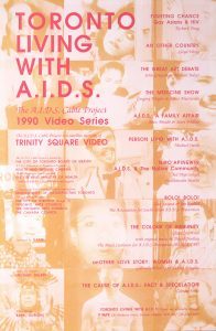 I’ve begun doing one-on-one in-person interviews with past contributors to the 1990-1991 cable-access community television show Toronto Living With AIDS as part of my book research. So far I’ve spoken with John Greyson, Richard Fung, and Kaspar Saxena. I’m setting up interviews with other contributors for the spring and I’ve already ransacked the organizational archives of Vtape and Trinity Square Video. I’m hopeful about publishing a definitive history of the series some time in 2020. There’s also talk, through the Archive/Counter-Archive project of launching some sort of Toronto Living with HIV/AIDS series reboot in 2020. Stay tuned!