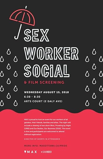 I was involved in two sex-work related curatorial projects this summer in Ottawa. I hosted a Sex Worker Social & Film Screening at SAW Video in collaboration with MAX Ottawa as well as curating and performing in the Rent Boy 101 edition of monthly literary salon Naked Boys Reading Ottawa. The film screening included George Stamos‘ short documentary Our Bodies Our Business (2016) and Gwendolyn’s NFB-funded animated short Prowling by Night (1990). Naked Boys Reading selections included reading from the works of Canadian activists/artists like Danny Cockerline, Andrew Sorfleet, and Daniel Allen Cox, as well as some qpoc memoirs from Craig Seymour and Abdellah Taïa, and of course some scholarly writing from me, Thierry Schaffauser, and the one and only Samuel Delany. Photo from backstage by Handsome Zac