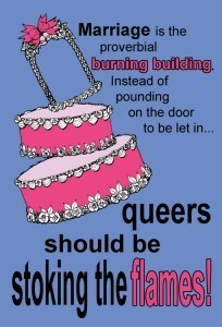 My chapter “Damn Right We’re Here to Destroy Marriage!” in The Gay Agenda: Claiming Space, Identity, and Justice (edited by Gerald Walton) is set to be published in early 2014. Still no confirmed publishing date, but I’ve been told it should be out very soon. This chapter argues against the politics of gay respectability and encourages queer activists to embrace rather than deflect the religious right’s worst fears about us—we are indeed to here to destroy marriage, the family, and the nation!