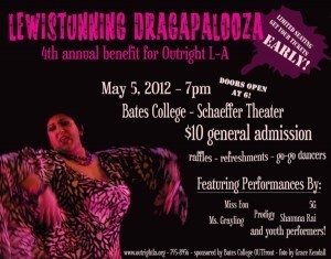 In Maine I will once again stage manage Outright L/A's annual dragapalooza at Bates College.  This fundraiser event, which raises thousands of dollars for one of Maine's only queer and trans youth drop in program in central Maine, has sold out every year and it's likely it will be no different this year.  With a slew of local talent, first time youth performers, and international performers like Dave End, this years event promises to be even better than the last!