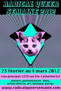I will be working on two written pieces: "Radical Queer Semaine & Pervers/Cité: Montréal's Queer Autonomous Festivals" for a forthcoming anthology titled Queer Autonomous Space and "That's Right, We're Here to Destroy Marriage!" for the activist anthology The Gay Agenda: Creating Space, Identity, and Justice.  The first piece will be co-authored with fellow Montreal organizer Frank Suerich-Gulick and will offer up a brief history and reflections on Montreal's two anti-corporate queer & trans festivals.  The second piece will be a reflection on my own work critiquing mainstream gay and lesbian politics and the energy that goes into denying the freaky, queer, anti-capitalist agenda some of us homos really do have.